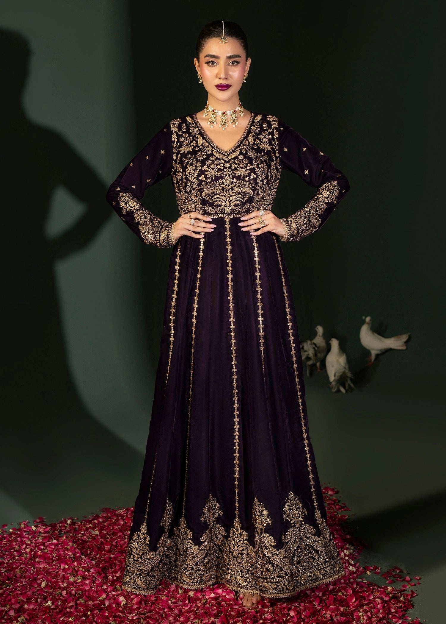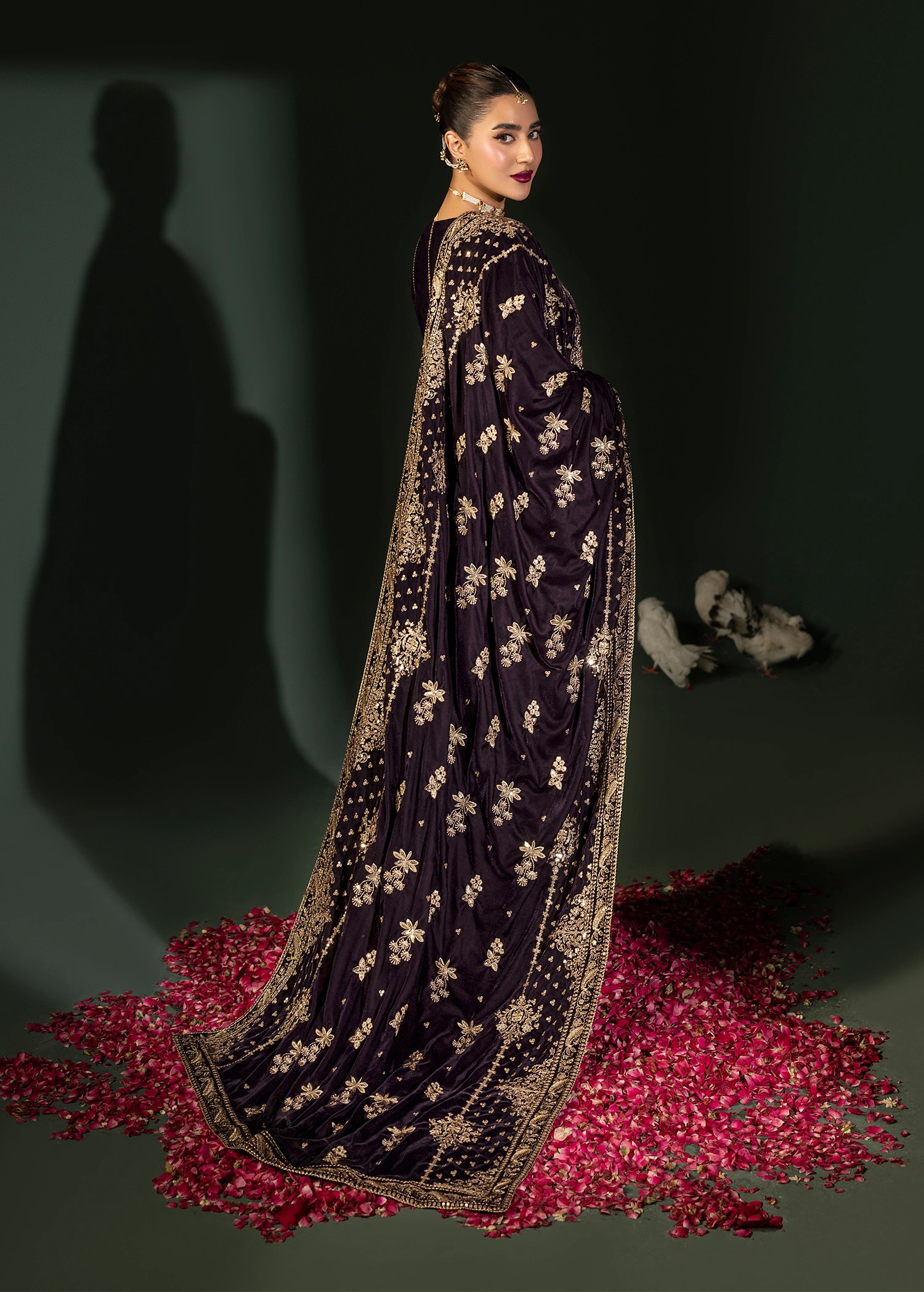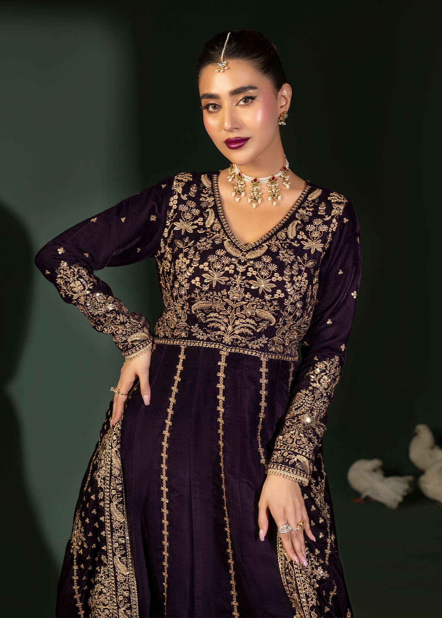 Experience Timeless Elegance with the Embroidered Velvet Pishwas.