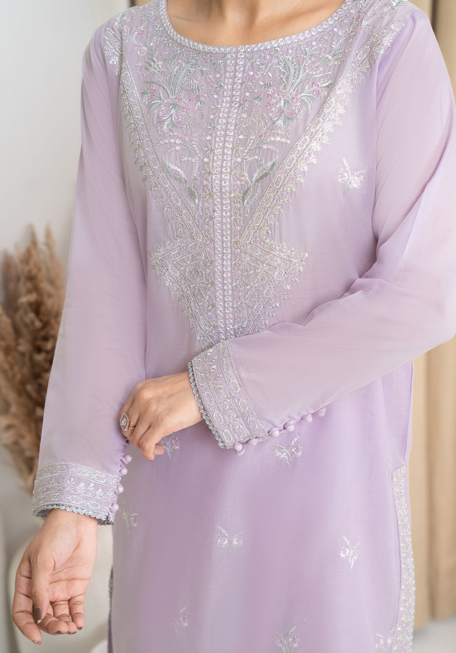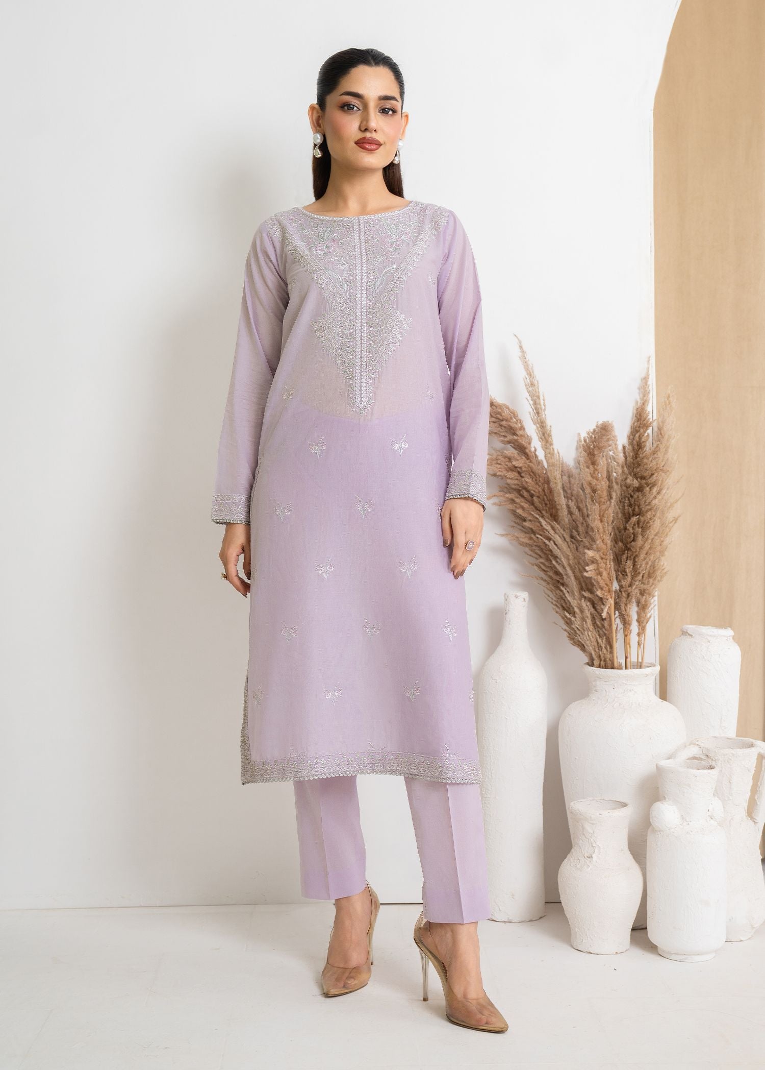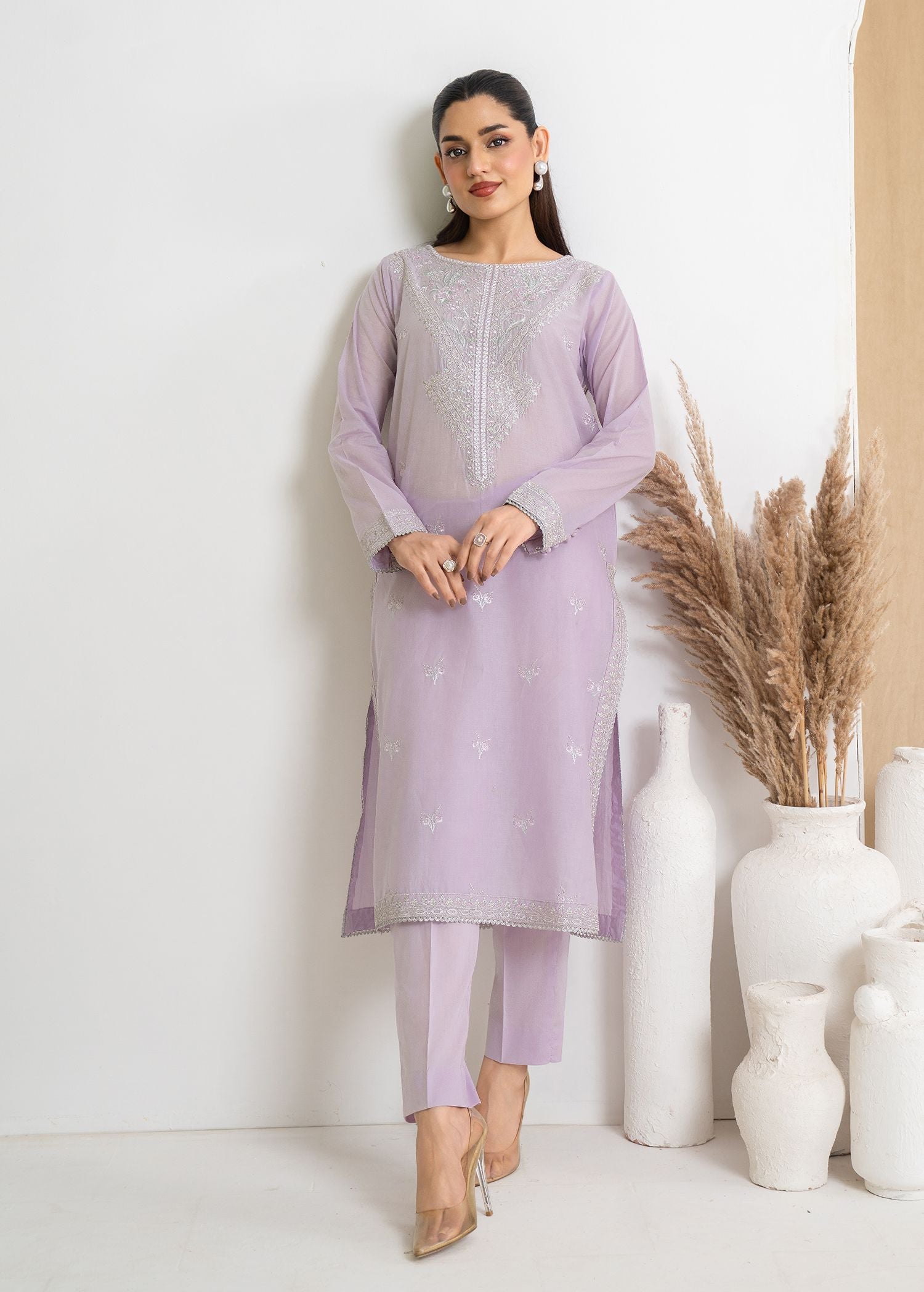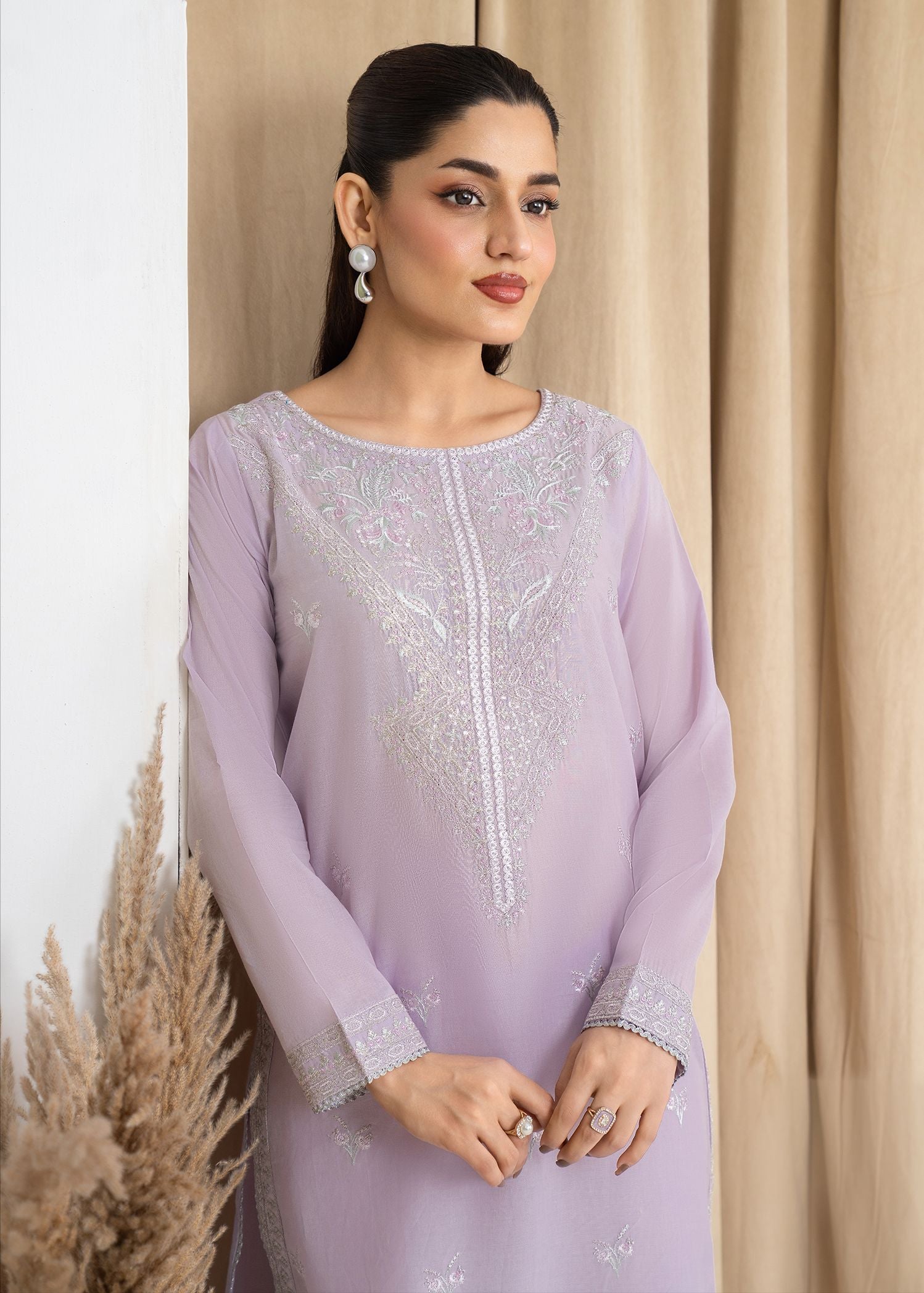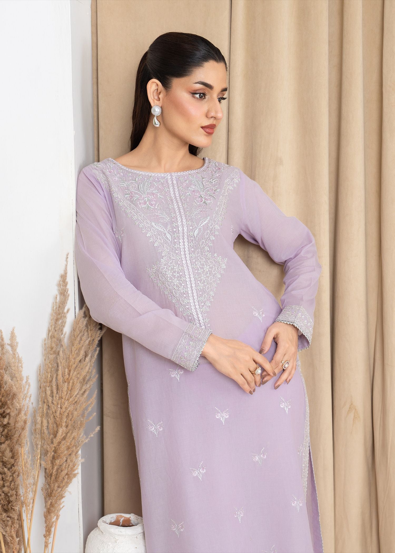 The beautifully crafted lawn ensemble features intricate embroidery on the neckline and sleeves, enhanced by an all over embroidered spray on the shirt. Completed with matching trousers, it exudes effortless elegance and charm.