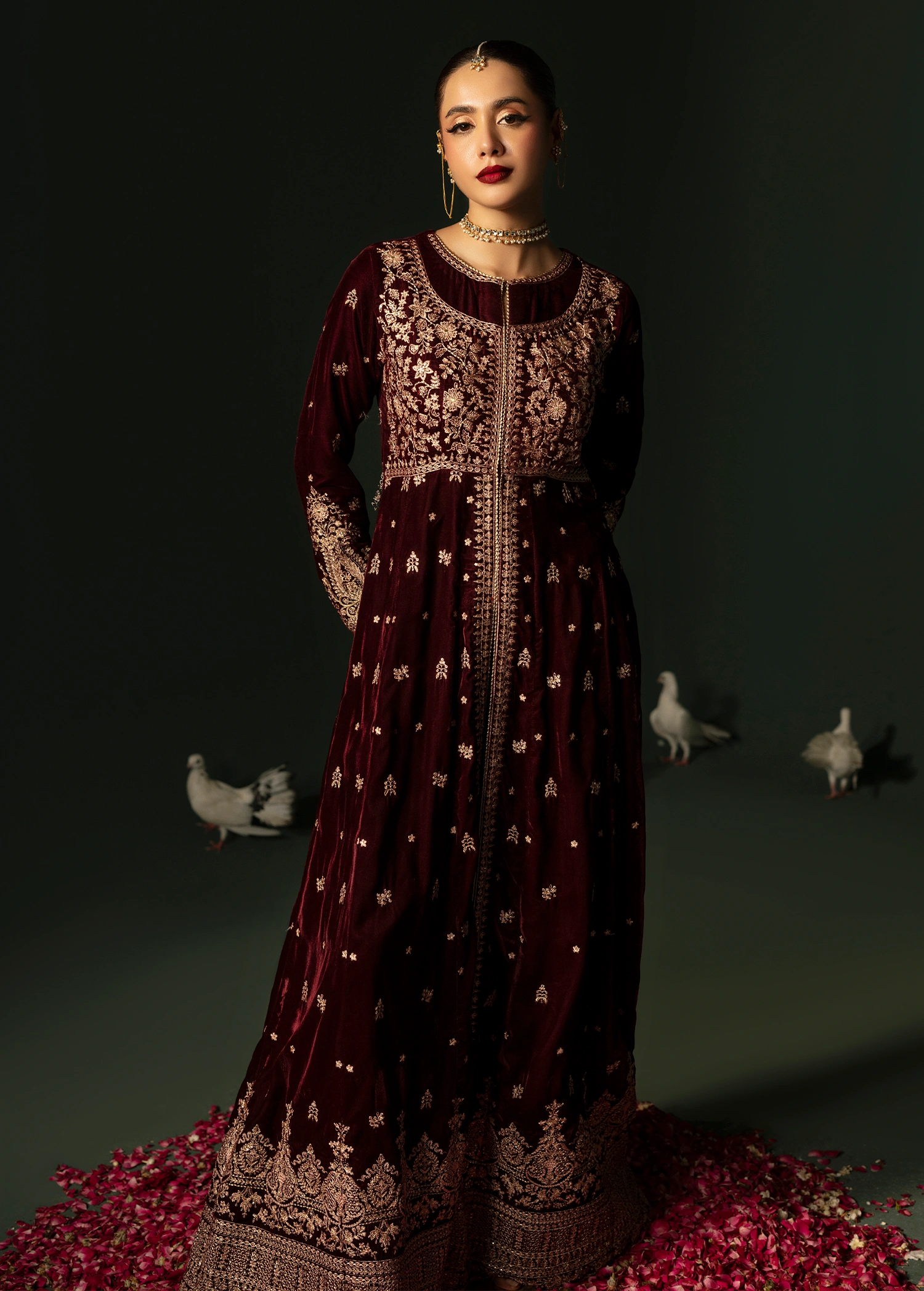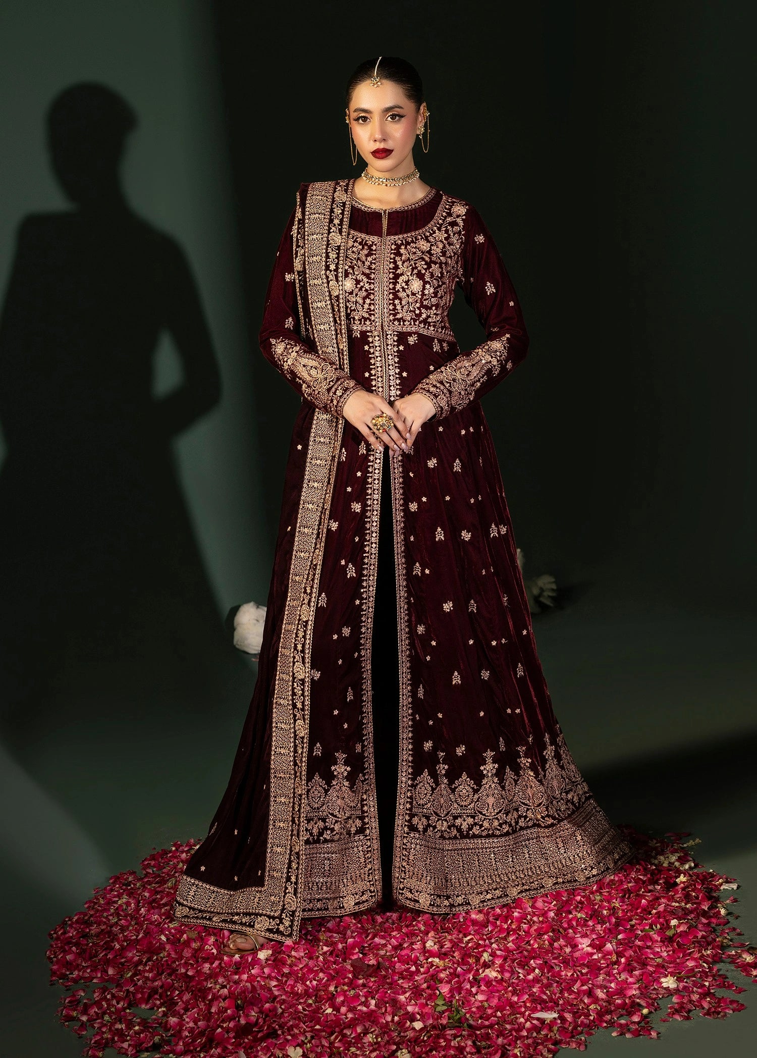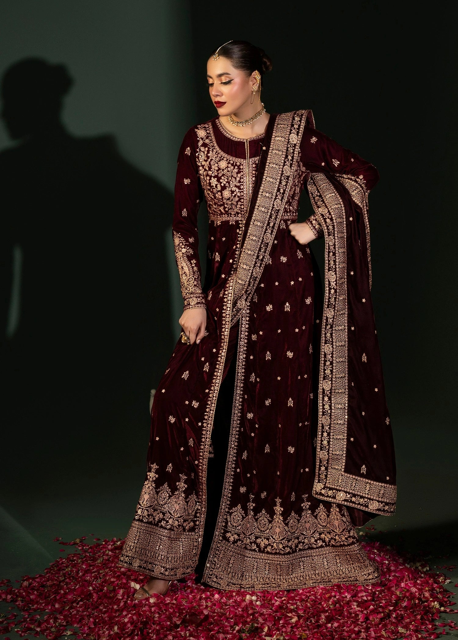Unveil Refined Beauty with the Embroidered Velvet Ensemble.