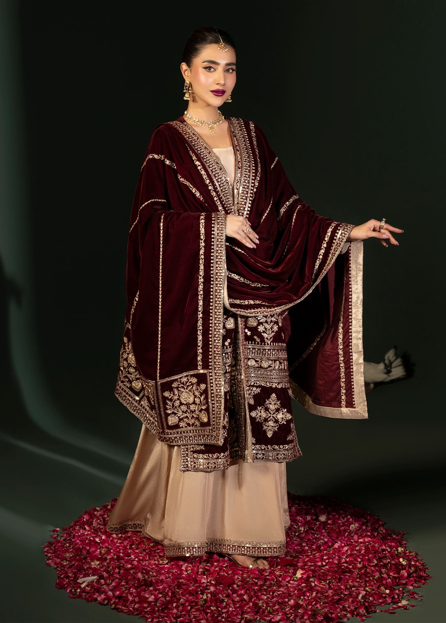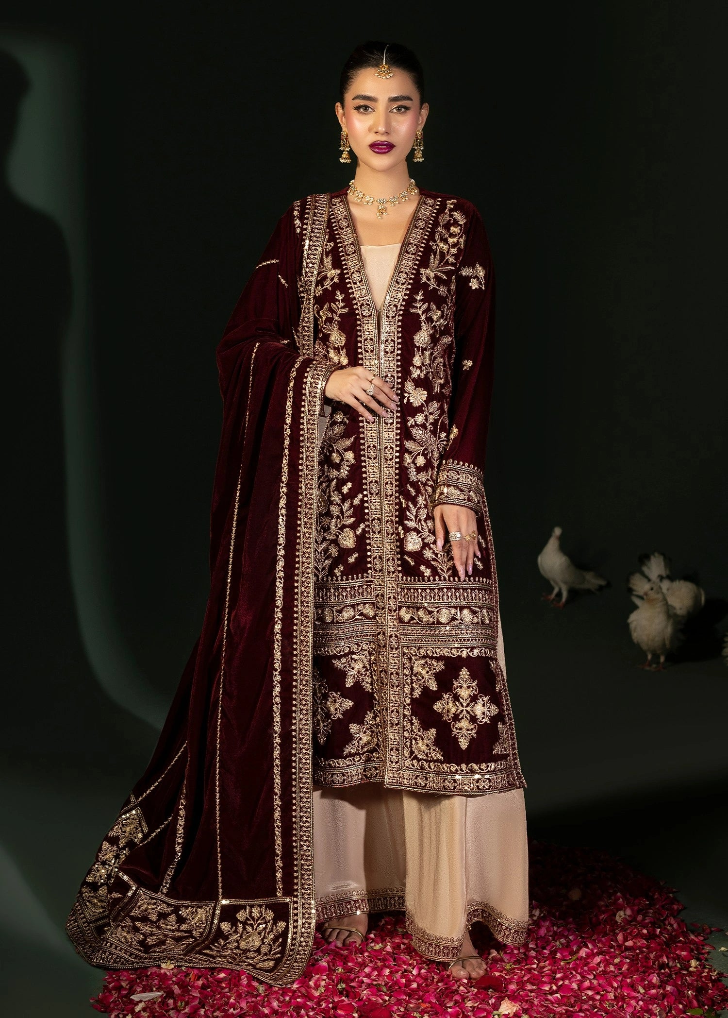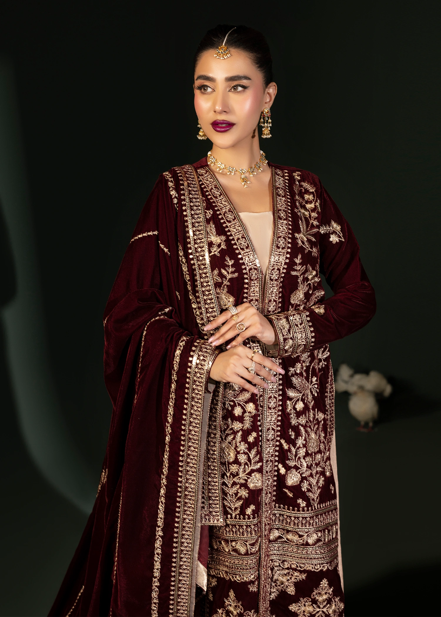 Step into Sophistication with the Embroidered Velvet Ensemble.