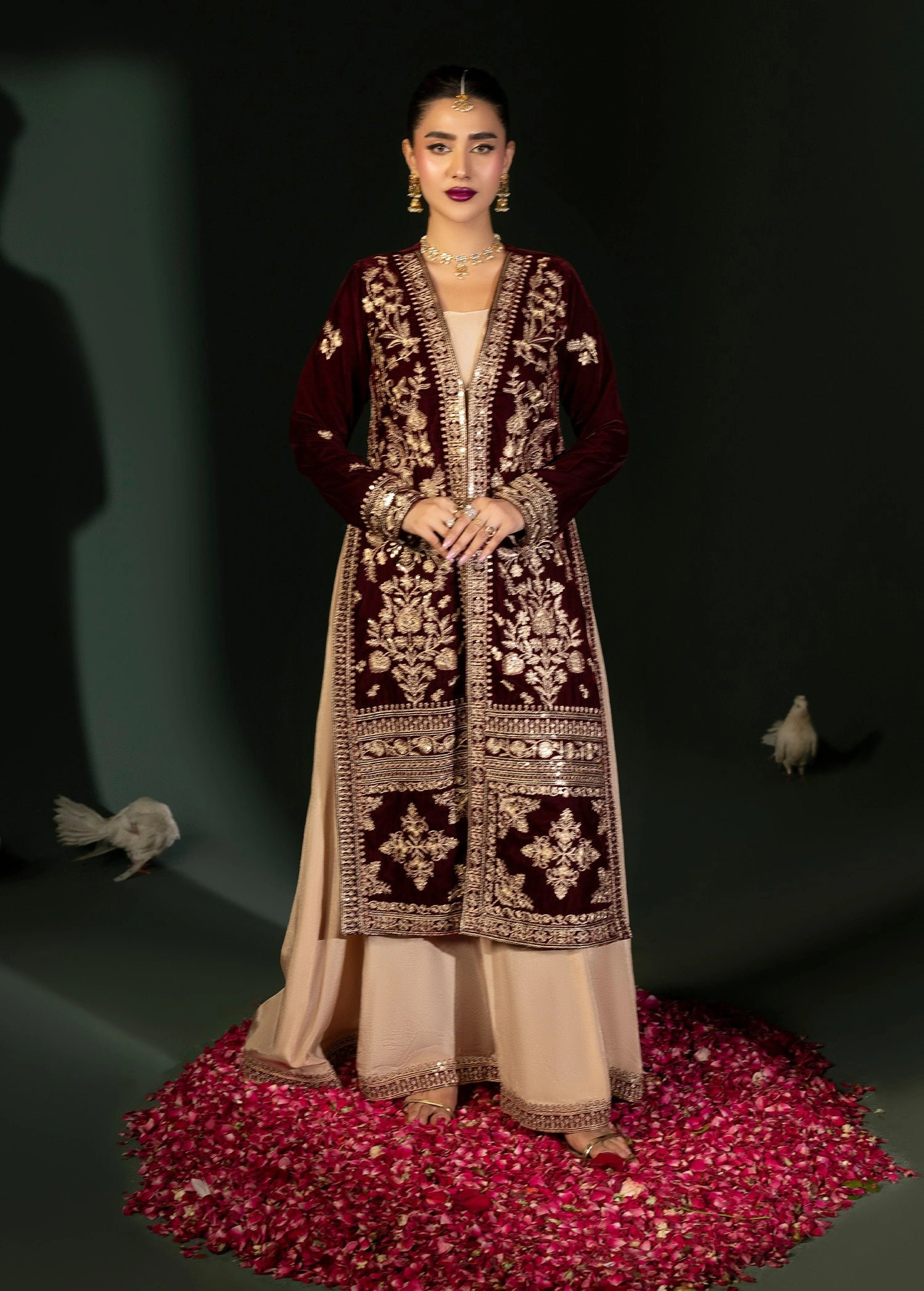 Step into Sophistication with the Embroidered Velvet Ensemble.