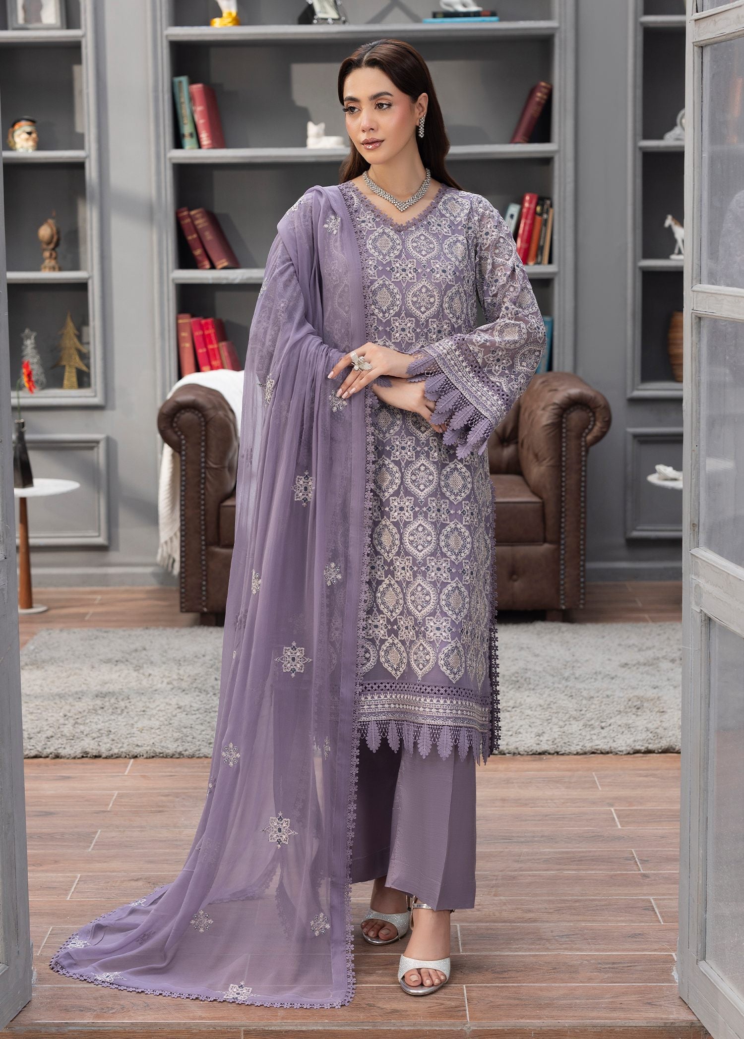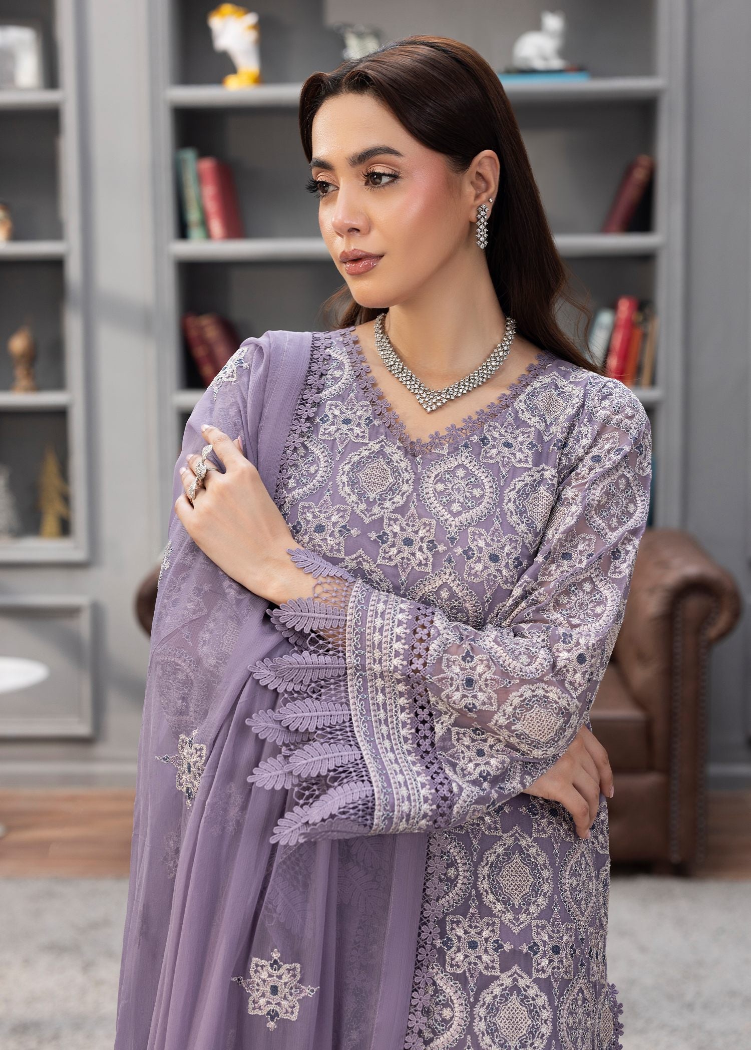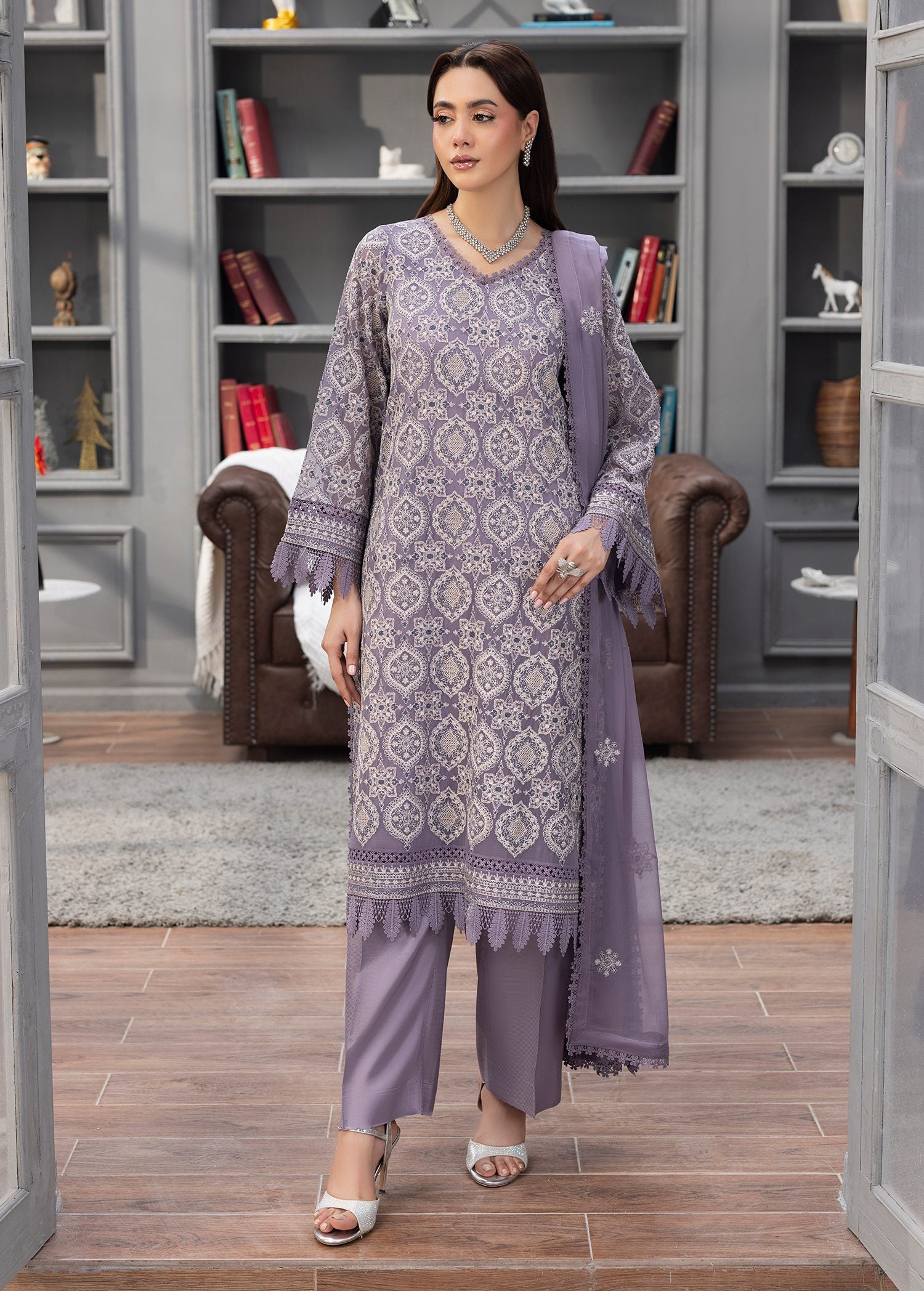 All Over intricate Embroidery with lace accents