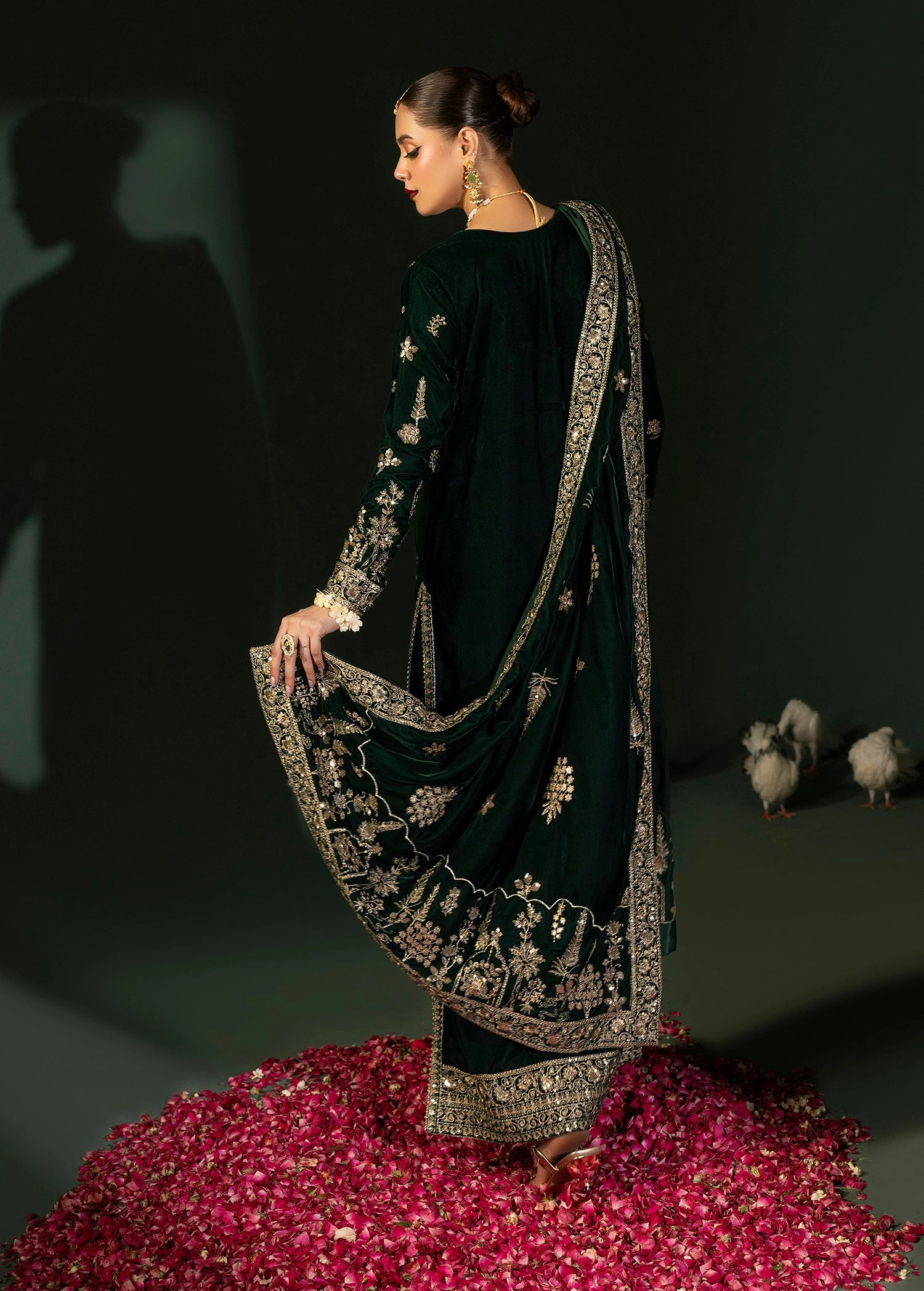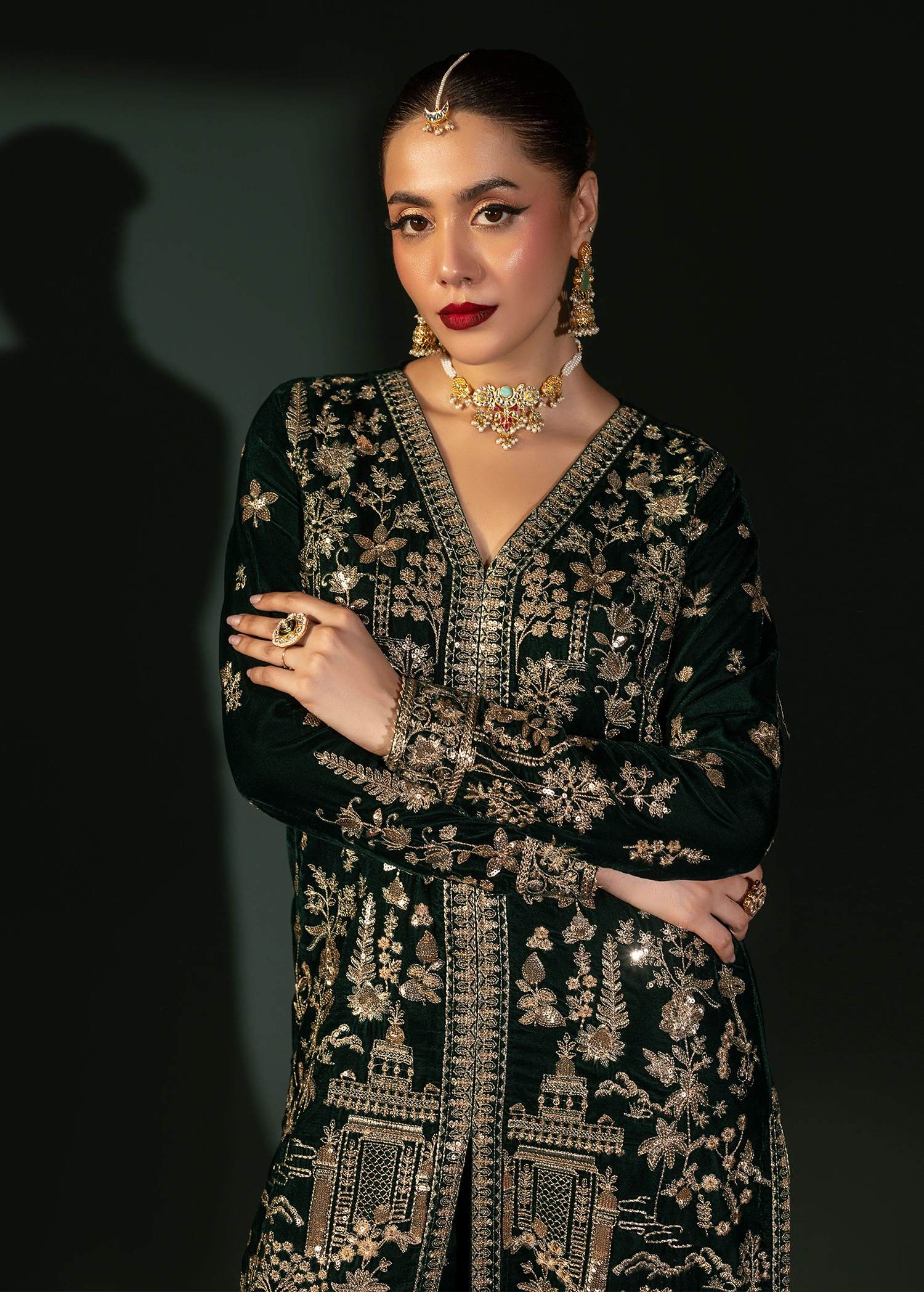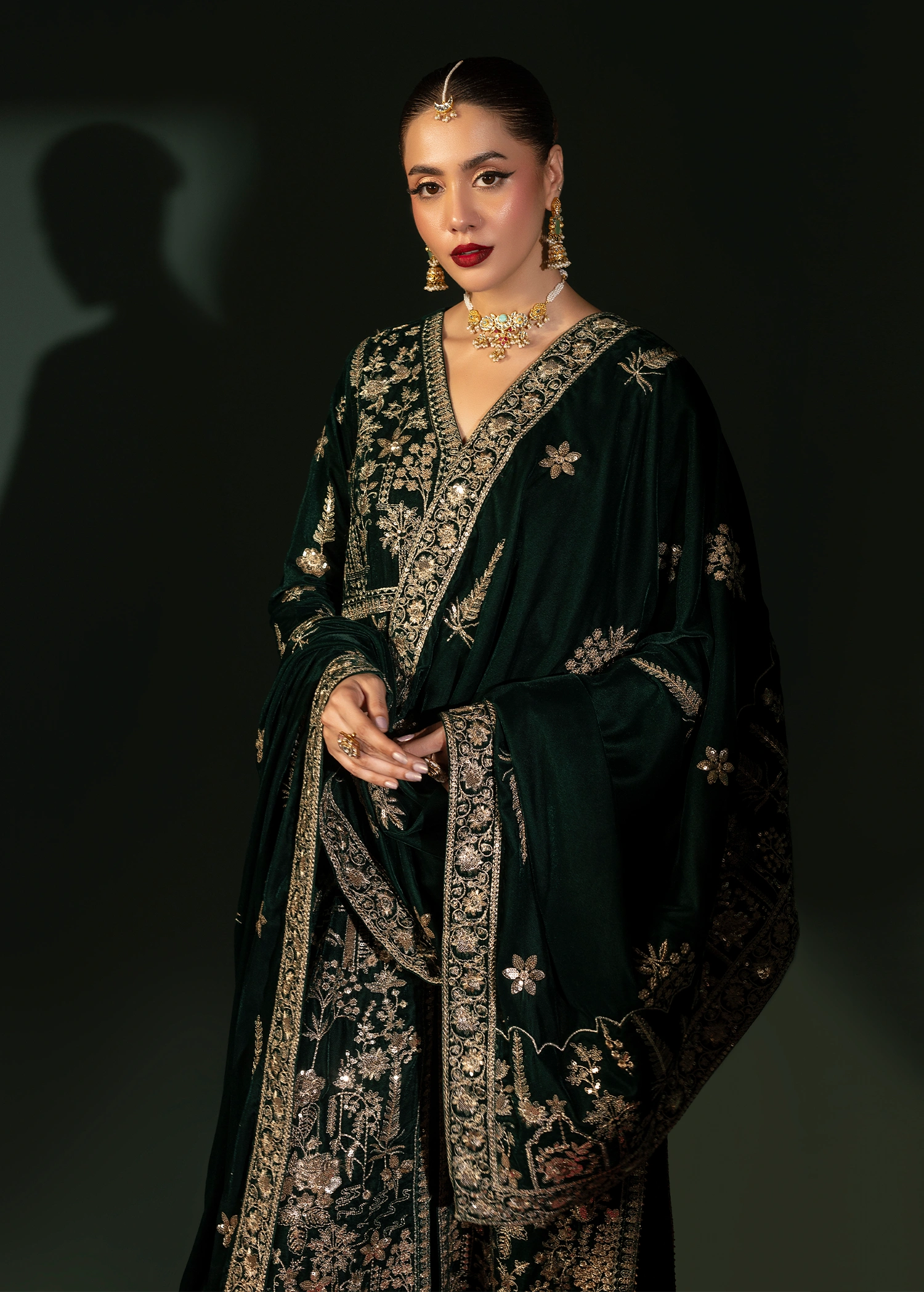 Immerse yourself in the Elegance of the Embroidered Velvet Ensemble.