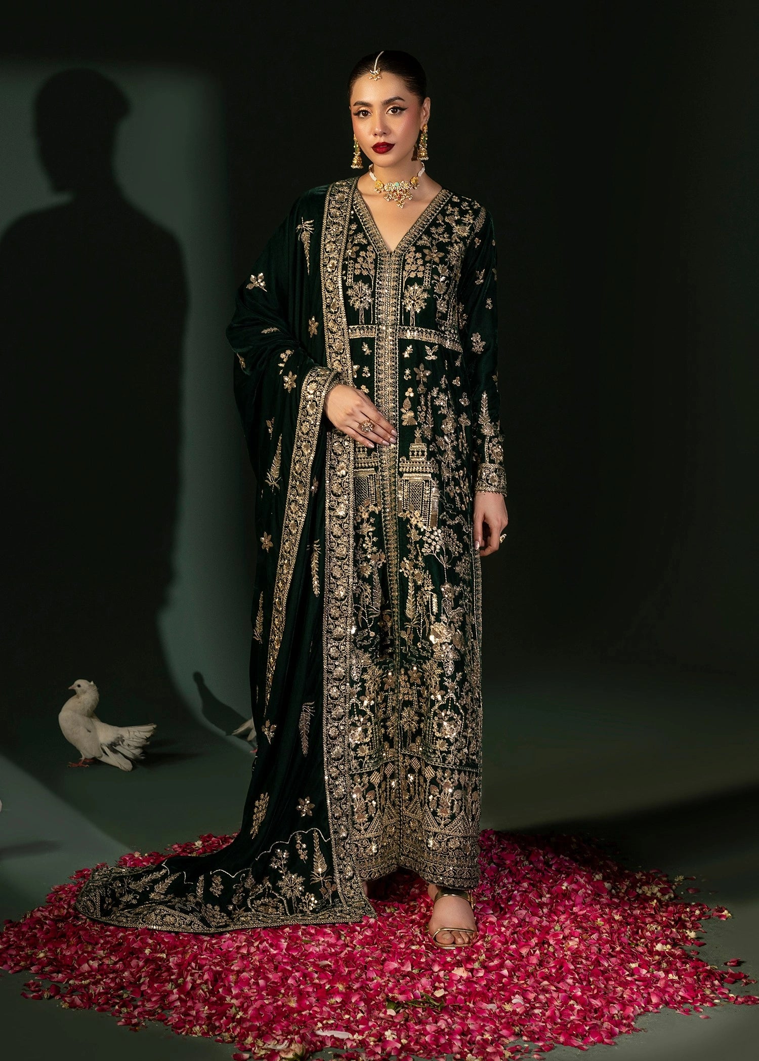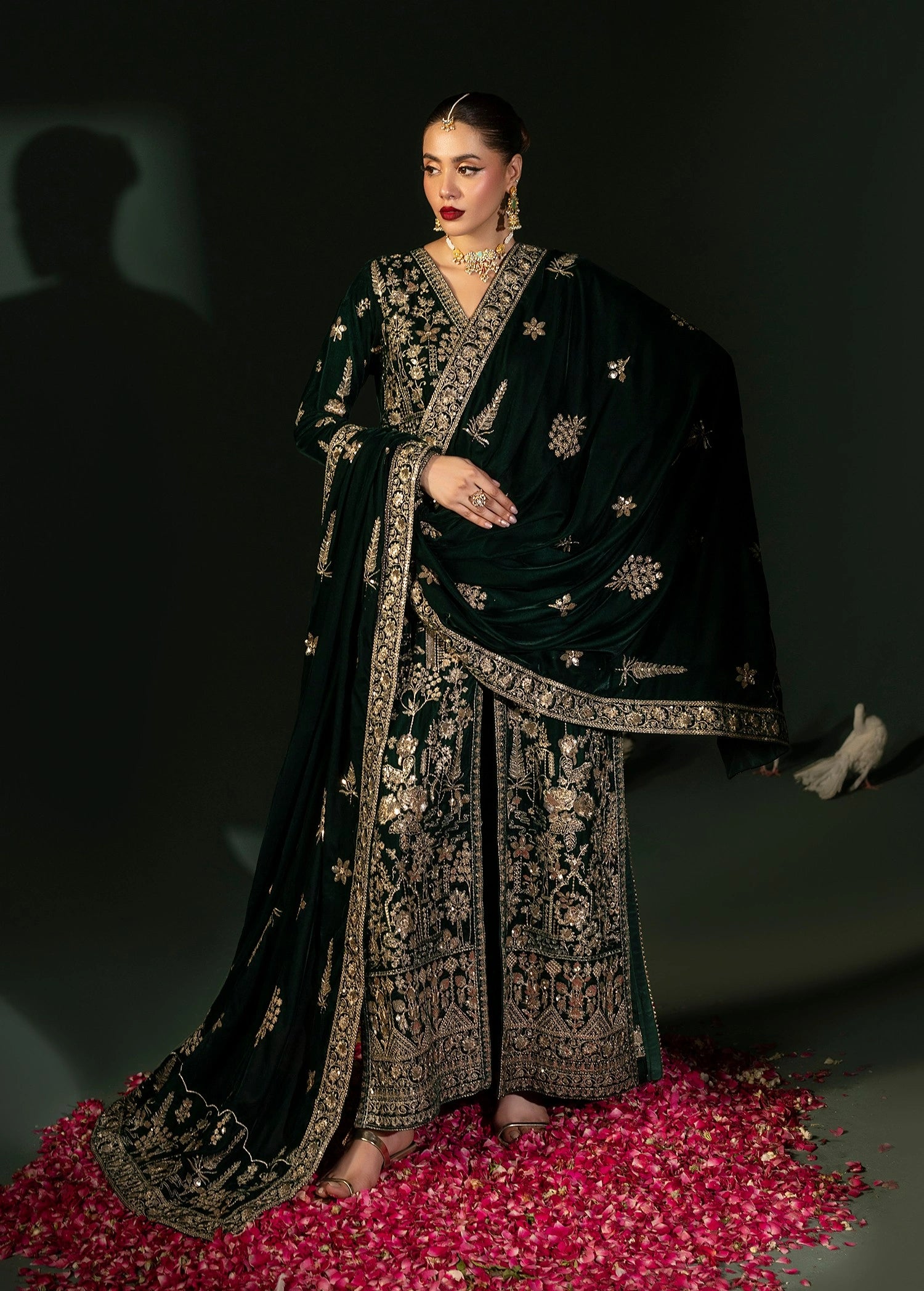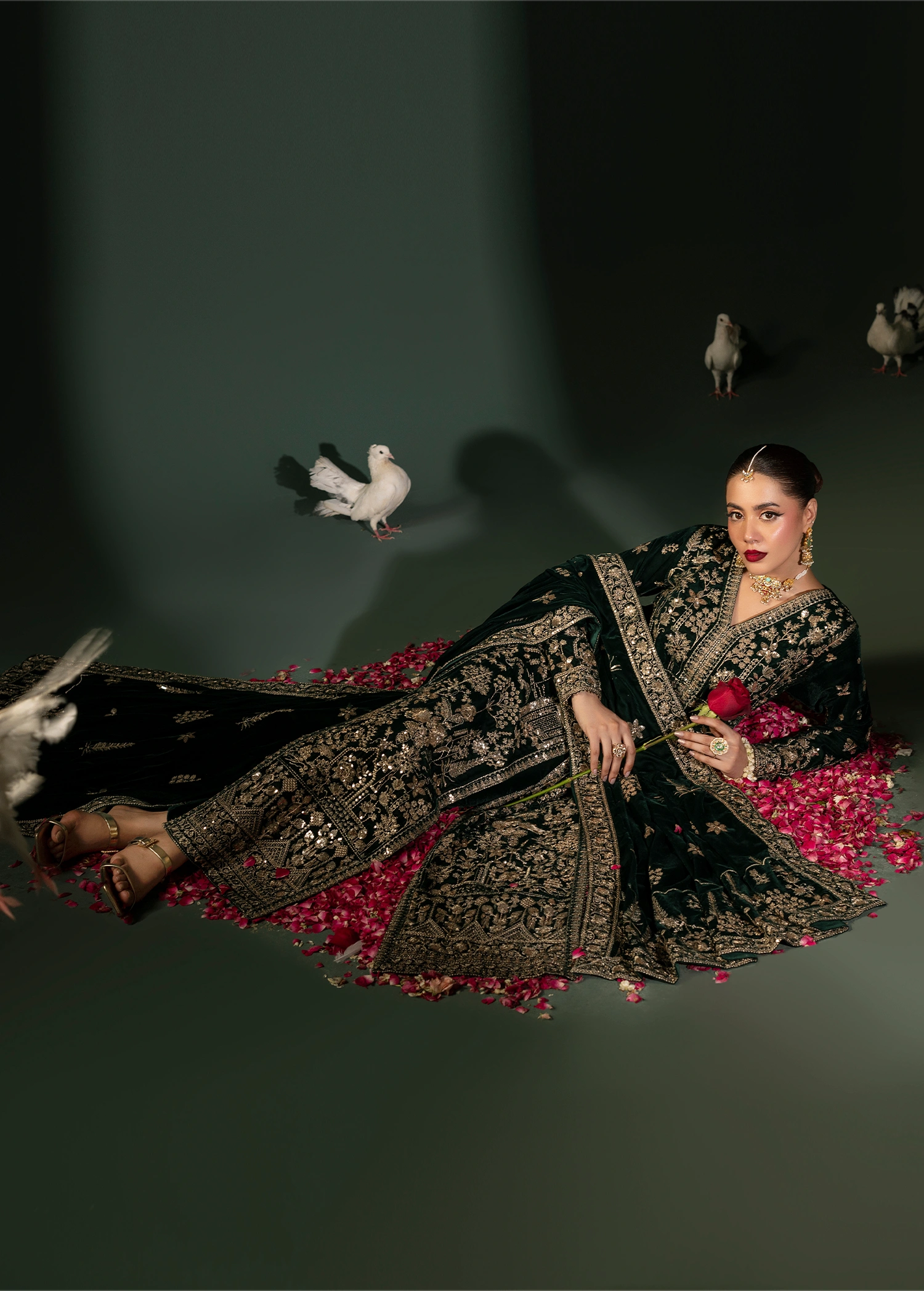 Immerse yourself in the Elegance of the Embroidered Velvet Ensemble.