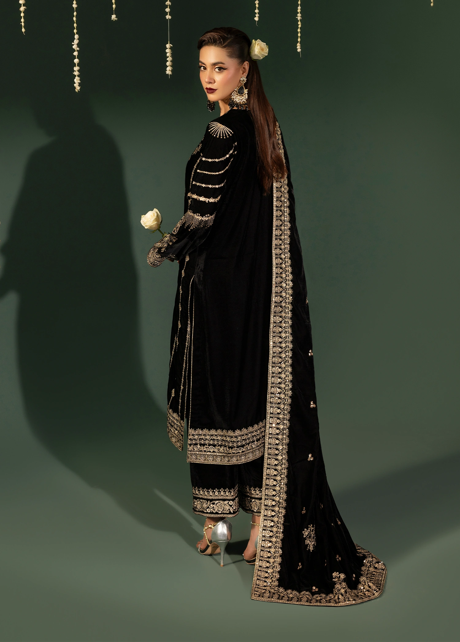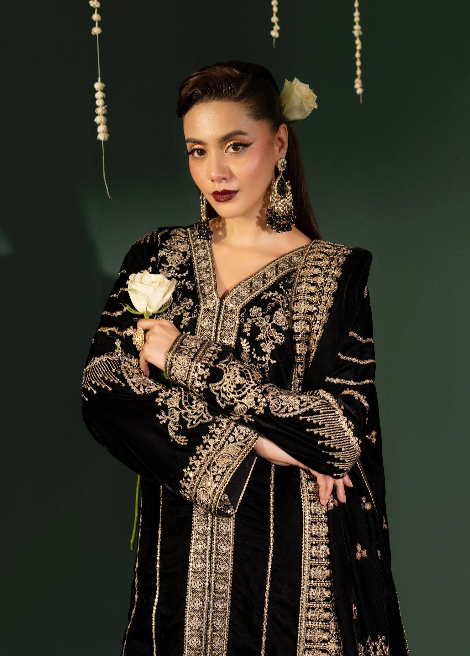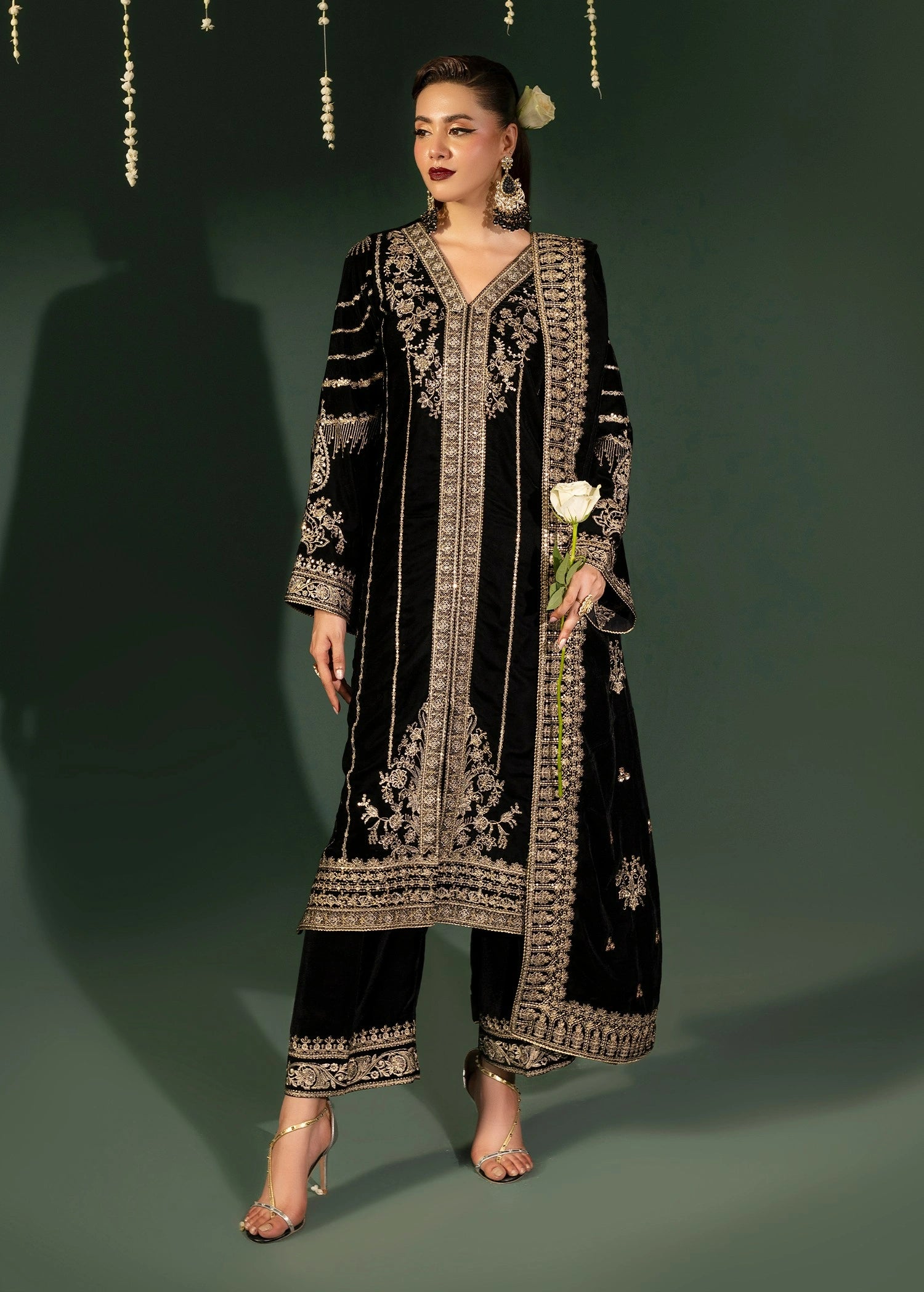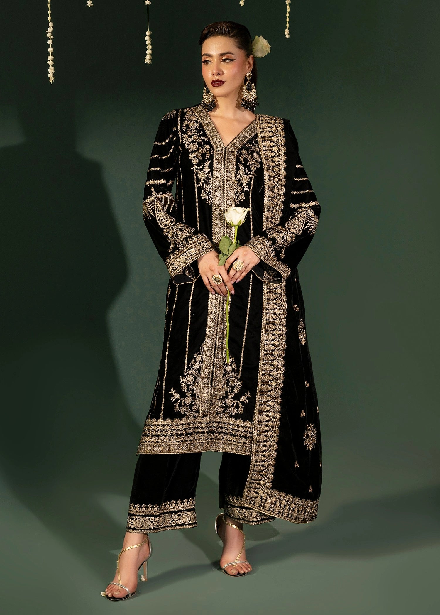 Redefine Elegance with the Embroidered Velvet Ensemble.